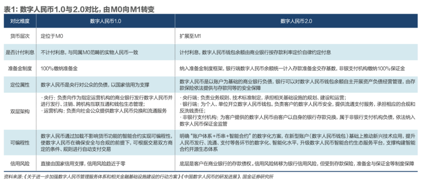 一是明确数字人民币的商业银行负债属性,将运营机构的数字人民币纳入准备金制度框架,统一计入存款准备金交存基数,实现从 M0到M1的货币层次跨越;