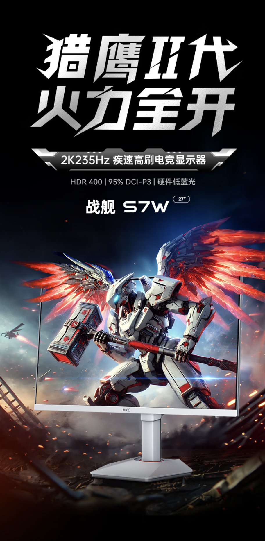 IT之家 2 月 2 日消息,HKC 现已在京东上架“战舰 S7W”27 英寸显示器,该机主打 2K 235Hz,定价为 999 元,首发价 919 元。