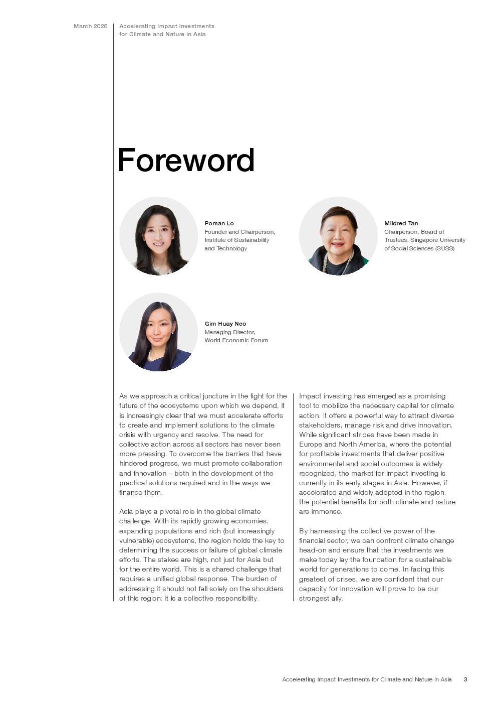 报告基于市场数据、案例研究和专家访谈,揭示了影响力投资如何撬动所需资金以应对紧迫议题,同时保障投资回报。受访专家一致认为亚洲需立即行动,但强调气候与生态挑战是需要全球共同解决方案的议题。