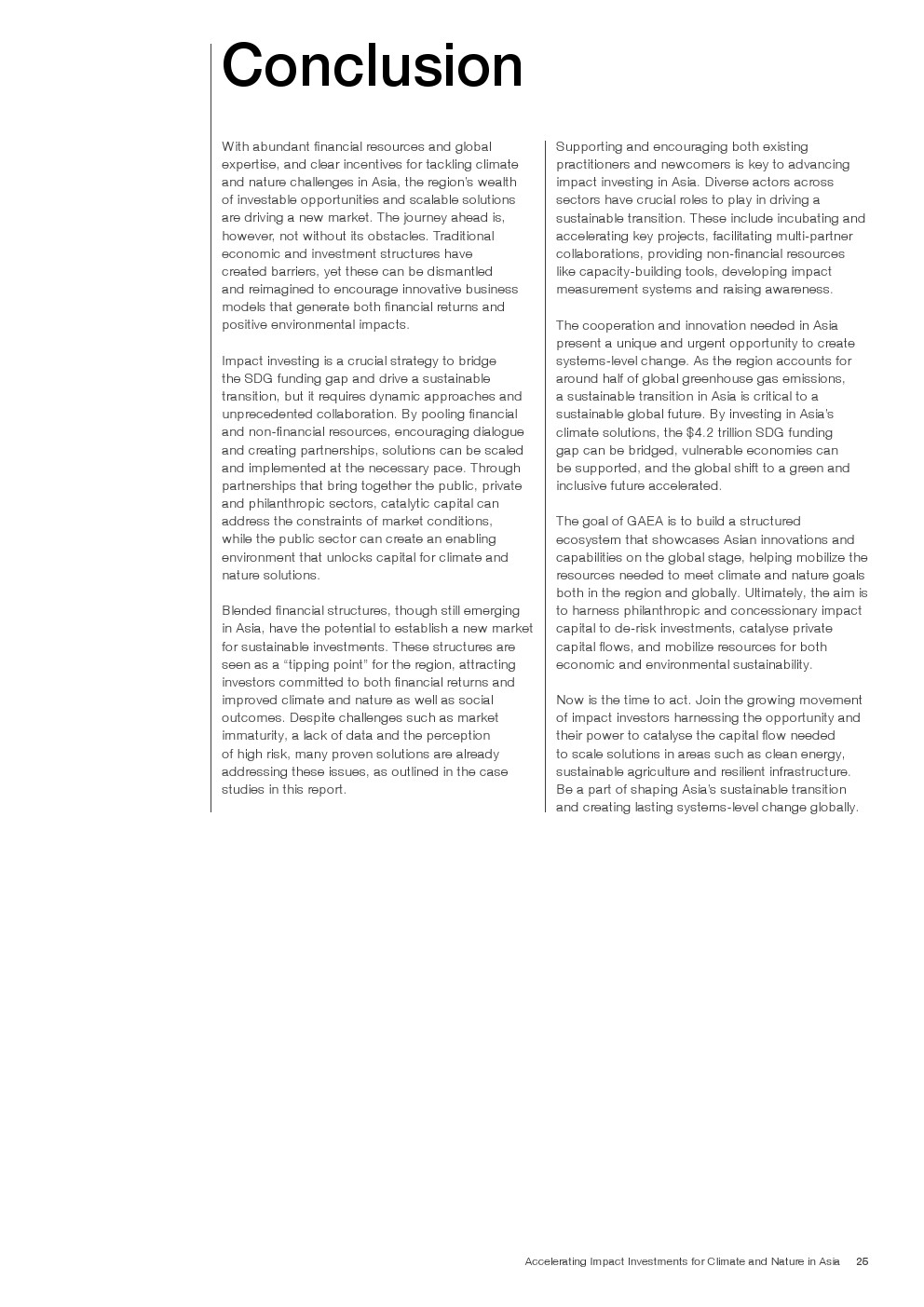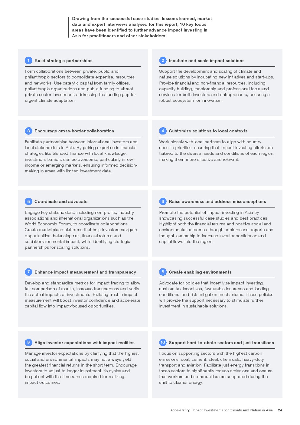 为加速亚洲影响力投资发展,报告最终提出前瞻性行动路线图,为从业者及其他关键利益相关方提供可操作的步骤,以应对已识别的挑战,充分释放影响力投资在解决全球最紧迫气候与生态危机中的潜力。
