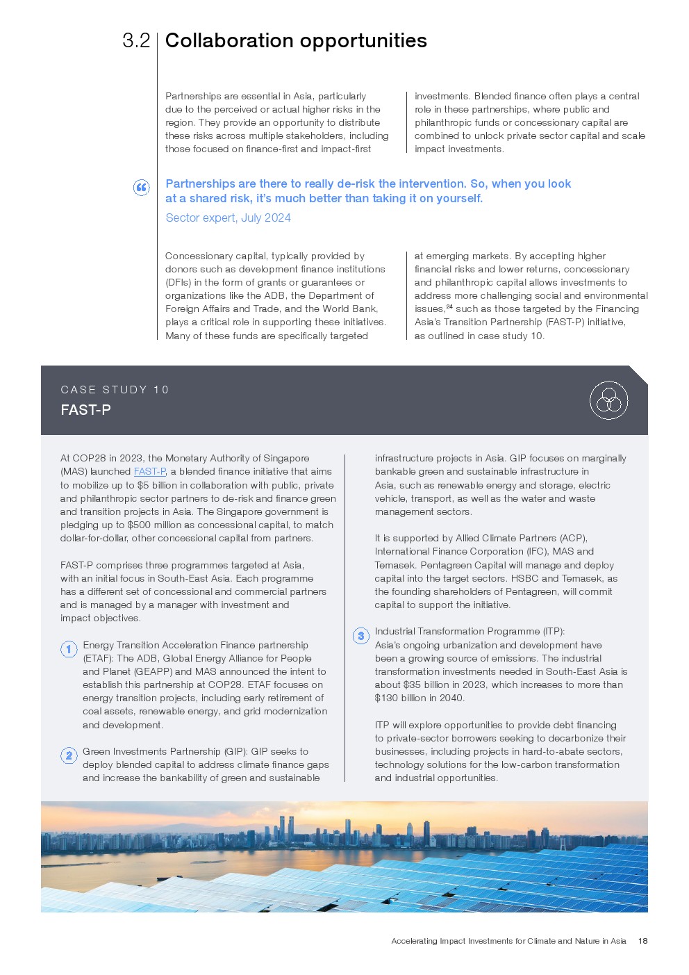 报告指出,跨越公共部门、私营机构与慈善行业的协作是突破这些壁垒的关键。通过整合各方优势,这类合作能构建可持续的金融架构,撬动额外私人资本,使投资更具规模效应、可复制性和吸引力。这种协作将创造环境-社会-经济的三重共赢,同时促进资源整合与资金流动。