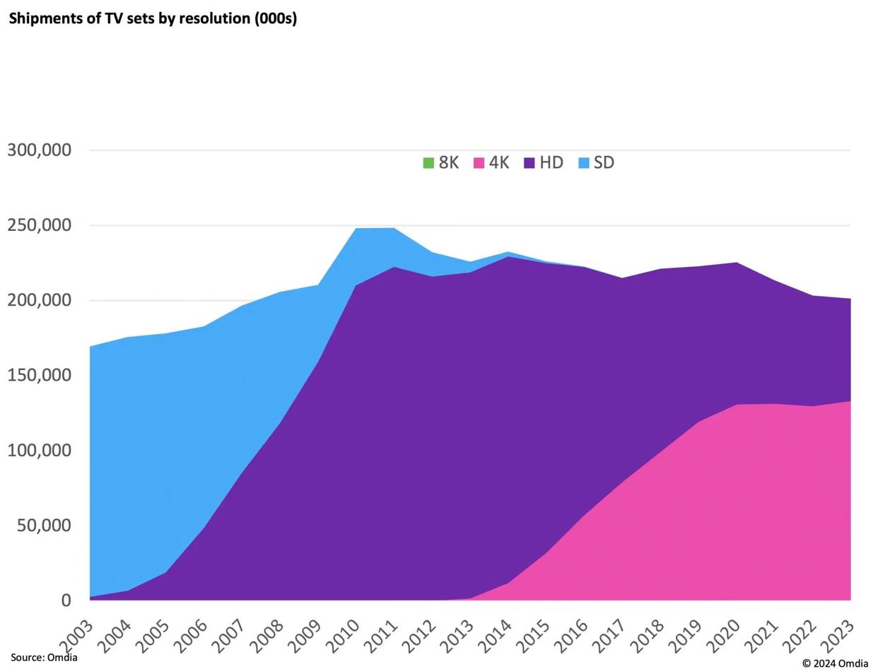 Omdia 2024 年的数据表明,需求正在转向 4K 电视。