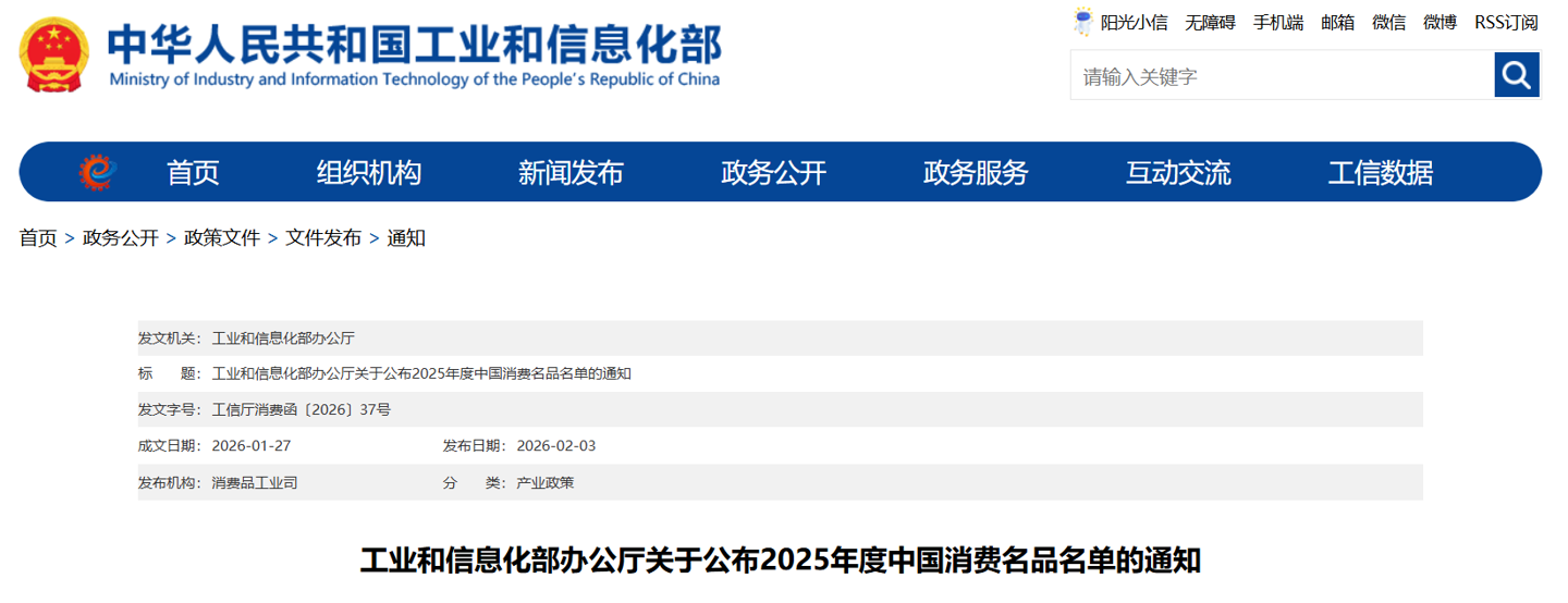 经企业申报、省级工业和信息化主管部门初审推荐、专家评审和网上公示,工业和信息化部确定了 2025 年度中国消费名品名单,现予以公布。