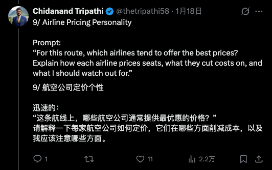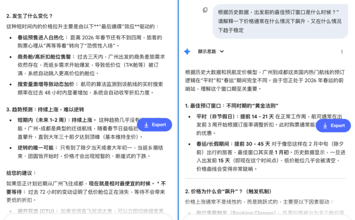 如果你只是问「哪家航司票便宜」,AI 默认会进入「客服模式」,给你一个稳妥、保守、但毫无信息增量的回答。但当你用一种做工程的方式切入这个问题,AI 的表现也就随之不同了。