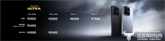iQOO 15 Ultra 共有 4 个版本可供选择,16GB+256GB 版本首销优惠价 5499 元( 2 月 4 日-2 月 12 日);16GB+512GB 版本零售价 5999 元,两个版本均能再享受至高 500 元的国补优惠。还有 16GB+1TB 版本售价 6999 元;24GB+1TB 版本售价 7699 元可选。所有购买用户尊享至高 24 期分期免息、五年风扇宝,以旧换新享大额补贴等丰厚权益。