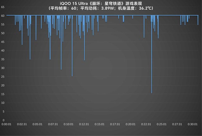面对《崩坏:星穹铁道》这类重载游戏,它则能在982P超分+60帧模式下持久稳定运行,画面细节更丰富,半小时平均帧率60帧,平均功耗3.9W,机身也仅保持温和的37℃左右。
