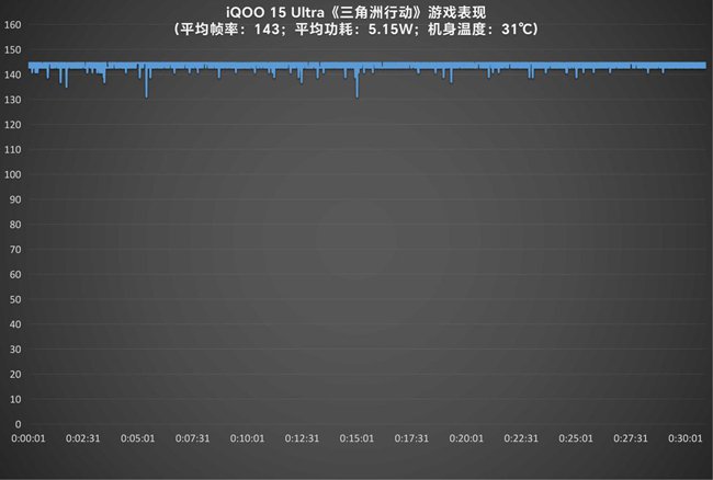 在《三角洲行动》《暗区突围》等射击游戏中,它已支持144FPS+极致画质同开。实测《三角洲行动》半小时平均帧率高达143帧,平均功耗5.15W,画面流畅且机身温度仅30℃出头,操作跟手毫无压力。