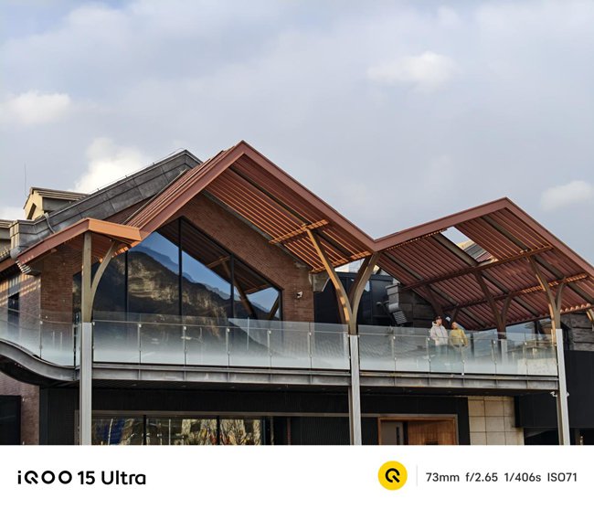 影像方面,iQOO 15 Ultra同样给出了扎实的硬件组合。它搭载了5000万像素三摄系统,包含一颗1/1.56英寸大底主摄、一颗支持3倍光学变焦的潜望式长焦,以及一颗5000万像素超广角镜头。在NICE 3.0光学重建引擎与Magic 2.0画质引擎的协同优化下,长焦的画质表现尤其突出——拍摄建筑时细节清晰、层次分明。整机成像风格致力于呈现原生光影,大幅减少算法修饰痕迹,力求做到所见即所得,还原真实质感。