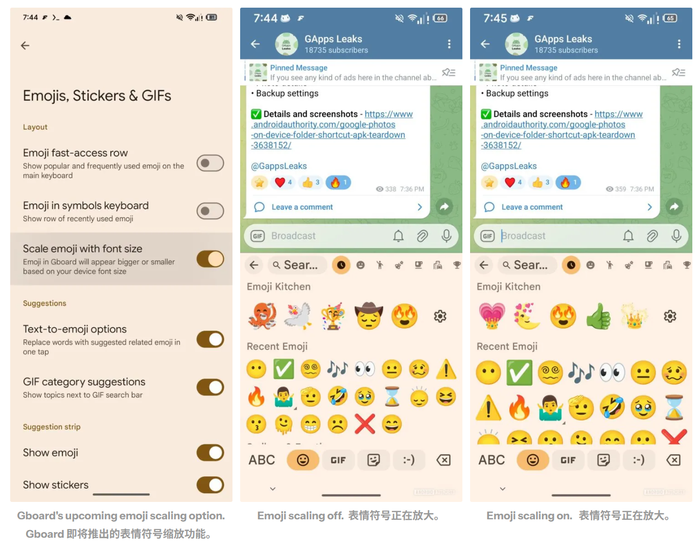 IT之家 2 月 6 日消息,科技媒体 Android Authority 昨日(2 月 5 日)发布博文,通过拆解 Gboard 测试版,发现谷歌正酝酿新特性,表情符号(Emoji)大小随系统字体同步缩放。