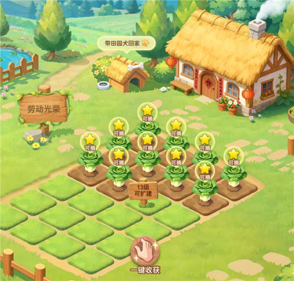 它舍弃了繁杂的玩法,操作简单。比如说种菜,你不用一块地一块地挨个撒种子,只需要按住种子,在没有播种的土地上轻轻拖拽,种子就会成批撒下去。
