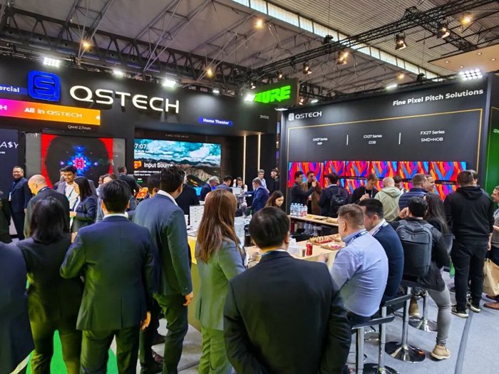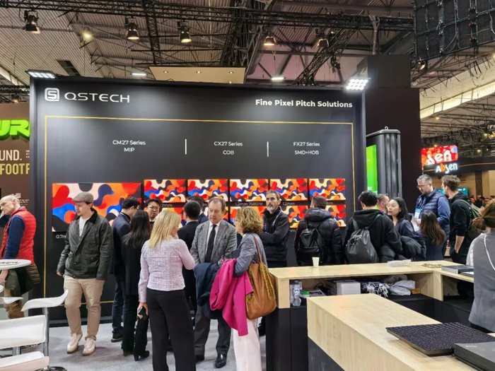 青松光电(QSTECH)以强大阵容深度参与,以“All in QSTECH”为主题,全面展示了智慧会议、教育、展览展示、家庭影院、体育赛事、户外传媒、商显零售、舞台租赁等场景的最新LED产品与技术方案,其中多款新品为全球首次亮相,成为展会现场瞩目的焦点。