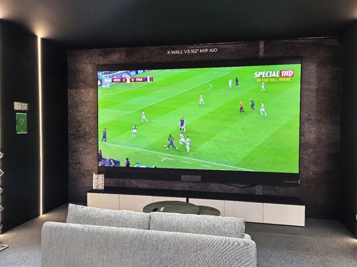 家庭影院一体机以162吋巨幕融合1000nits的标准亮度、低至0.003nits起灰亮度,搭配120Hz起灰刷新、7680Hz高刷新率性能,再辅助以无温感技术,能高度还原影视效果,为家庭娱乐带来影院级冲击体验。