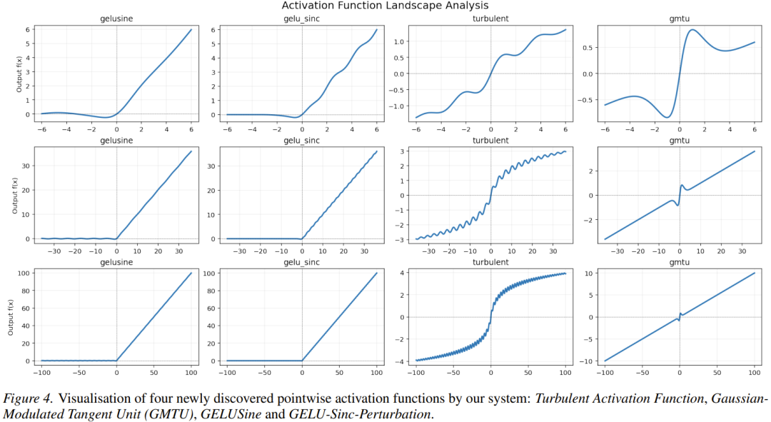 经过 AlphaEvolve 的多轮迭代,系统「挖掘」出了多个具有独特特性的激活函数。有些是对现有函数的改良,有些则不仅奇异,甚至带有某种「物理直觉」。