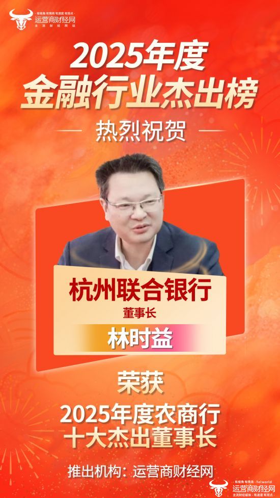 近日,运营商财经网基于对金融行业各个细分领域的观察,推出了一系列的杰出榜榜单。目前,“2025年度农商行十大杰出董事长”已经确定,杭州联合银行董事长林时益榜上有名。
