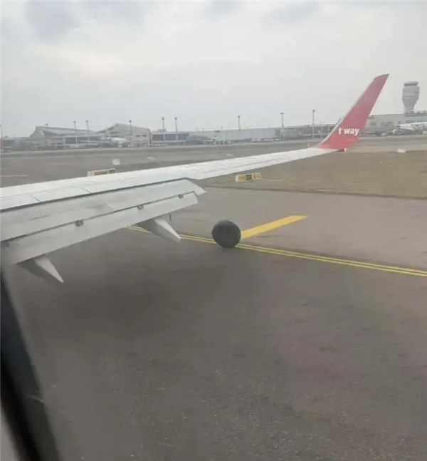 有该航班乘客拍摄的视频显示,客机右侧主起落架上的一个轮胎爆胎并脱落,轮胎高速旋转脱离飞机,场面十分惊险。