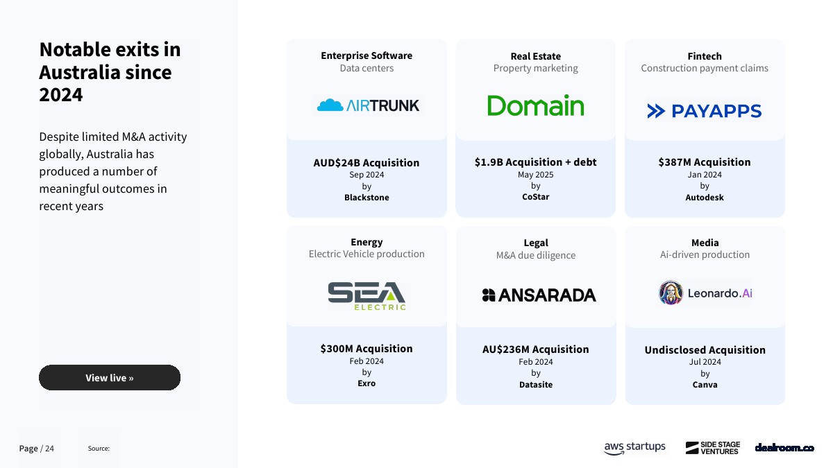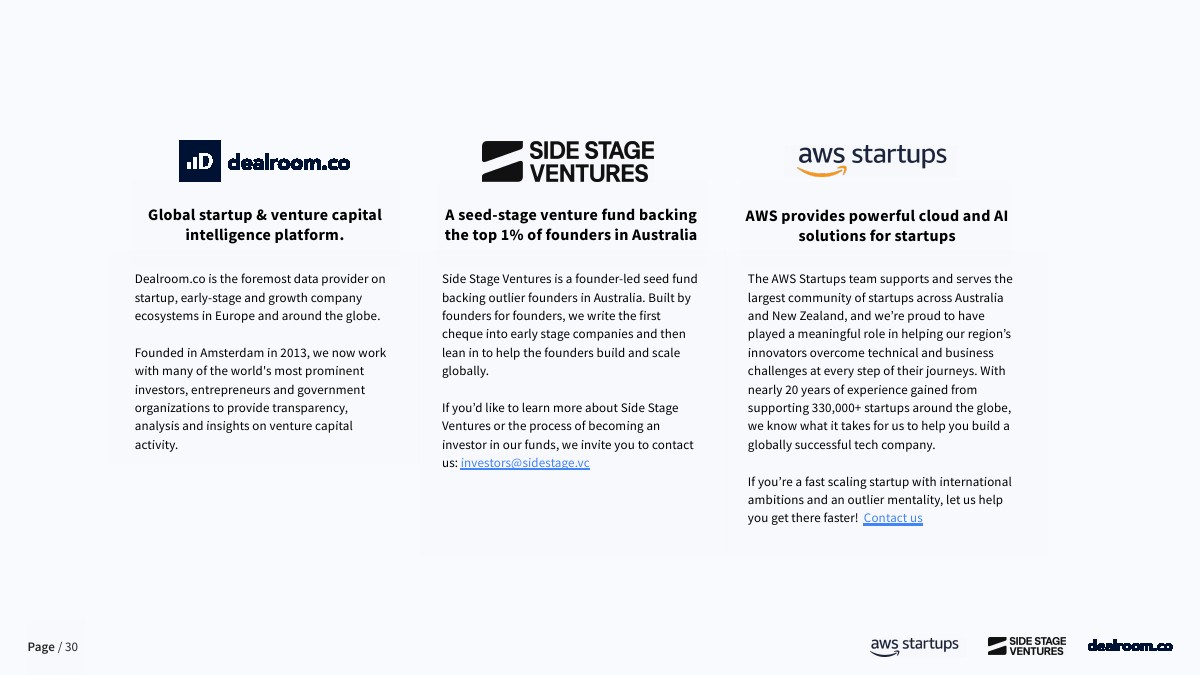 综合来看,澳大利亚创投生态已进入“高产出、低配置”的关键阶段。一方面,其在独角兽效率、十角兽密度和退出质量上已达到全球一线水准;另一方面,早期资本供给不足、本土资金占比偏低,使其长期存在系统性低估。未来三至五年,随着全球资本向高效率市场回流,以及AI、能源与深科技赛道持续放量,澳大利亚有望从“被低估的高效市场”,演变为亚太地区最具性价比的长期配置型创投目的地。