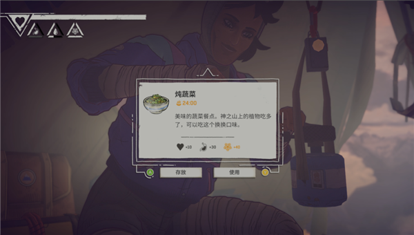 要登上山顶,这么一点东西显然不够,所以在前进的路上,除了攀岩,你还肩负着寻找水源、食物的任务。