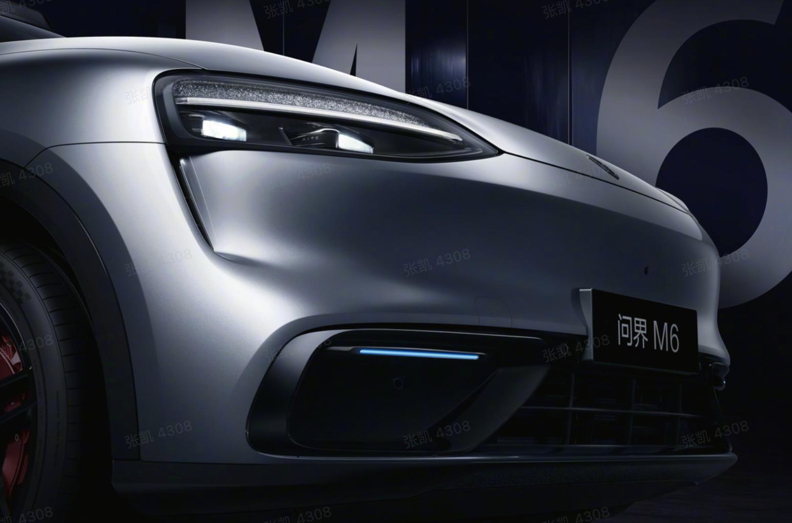 外观方面,问界 M6 增程版前脸轮廓延续品牌家族式设计风格,采用细长造型前灯组,车顶配备激光雷达,前包围两侧设有辅助驾驶小蓝灯。车身侧面应用半隐藏式车门把手,轮眉及侧窗边缘辅以镀铬饰条,部分车型配备亮面轮辋;同时提供黑色轮辋运动版本,搭配红色刹车卡钳及亮黑色饰条。车尾配备可发光车标,辅助驾驶小蓝灯位于两侧灯组上边缘,并配有后扰流板及黑化处理的尾部标识。