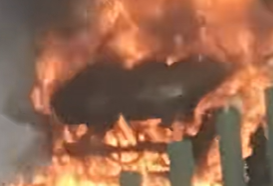 网友发布的现场视频显示,起火的电动汽车被熊熊烈火包裹,明火覆盖了车身的大部分区域,伴随大量浓黑烟雾直冲天际,在快速路高空形成明显烟柱。