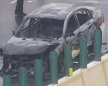据现场目击者的描述,在这辆电动汽车前方约数十米的车道位置,还停靠有一辆SUV,事故发生后,电动汽车的驾驶员已迅速撤离至道路安全区域。