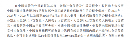 值得注意的是,老乡鸡还存在欠缴员工社保问题。招股书显示,在2022年、2023年、2024年以及截至2025年8月31日的八个月,老乡鸡社会保险及住房公积金供款缺口分别为1070万元、2140万元、3630万元及3190万元,合计超1亿元。