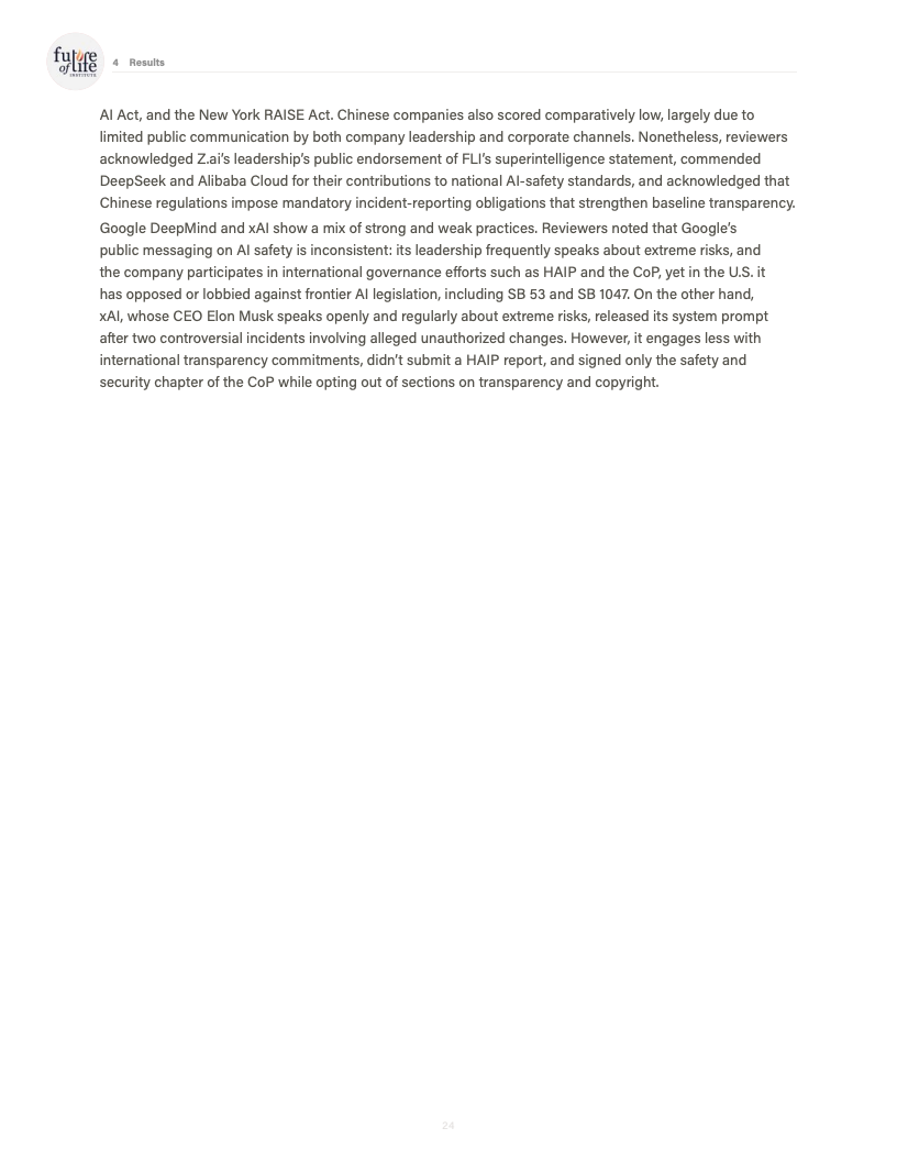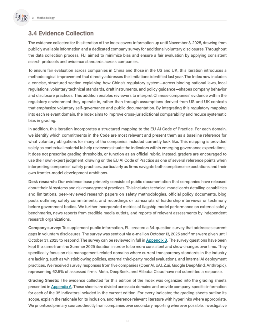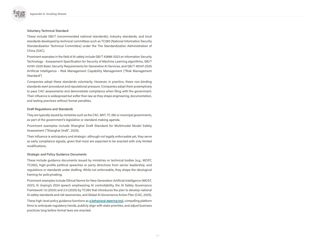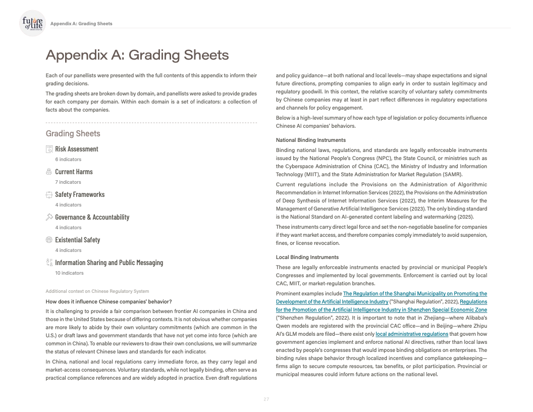 一个值得注意的结构性差异在于监管环境。评审认为,中国企业虽然未进入前三,但在内容标识、事故报告等方面受国内强制性监管影响,部分指标的基线表现反而优于依赖自愿披露的西方同行,这在一定程度上缩小了治理透明度的差距。