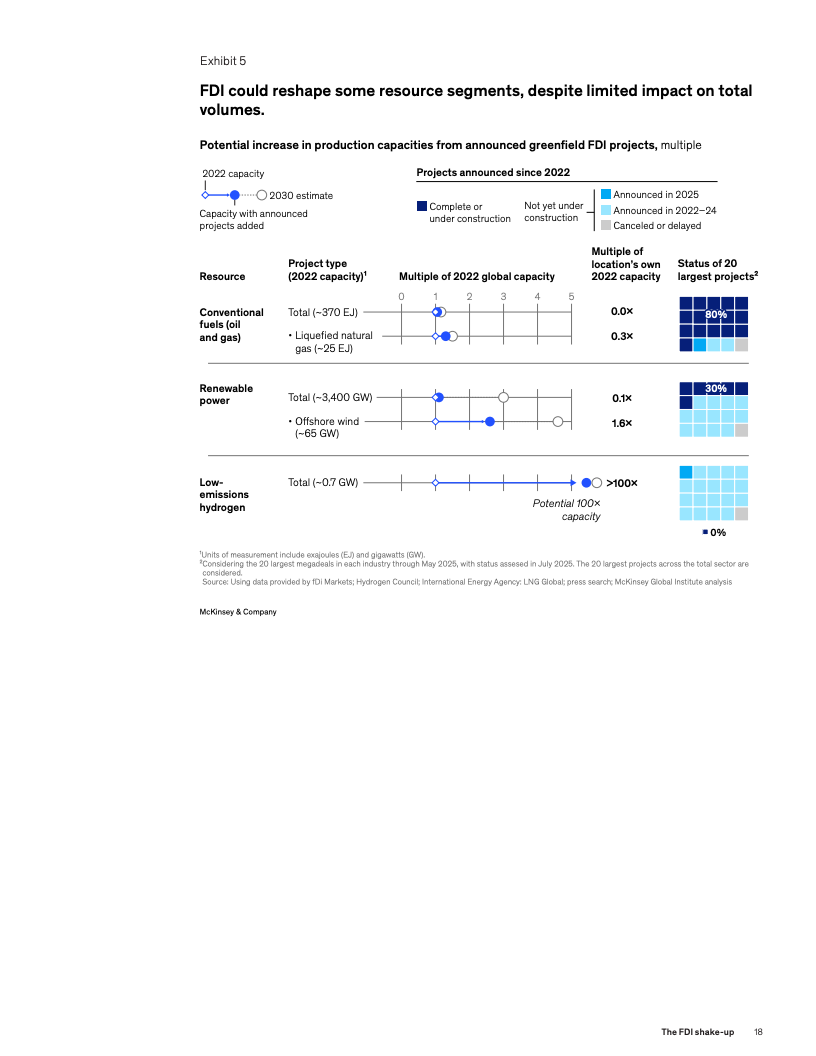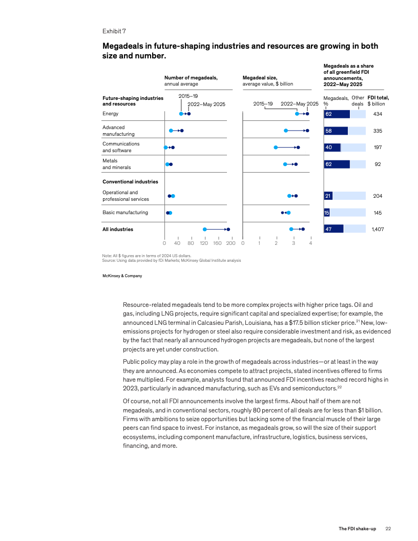 从投资形态看,FDI正在被少数“超级项目”主导。单笔金额超过10亿美元的巨型项目仅占全部项目数量的约1%,却贡献了接近一半的投资总额,而五年前这一比例仅为三分之一。半导体晶圆厂、电池超级工厂和超大规模数据中心的单体投资动辄数十亿美元,抬高了进入门槛,也强化了全球产业集中度。