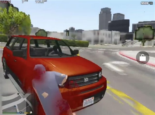 从视频可以看到,经过压缩的《GTA5》几乎已经没有画质可言了,只剩一些块状物体代表人物、汽车、场景。