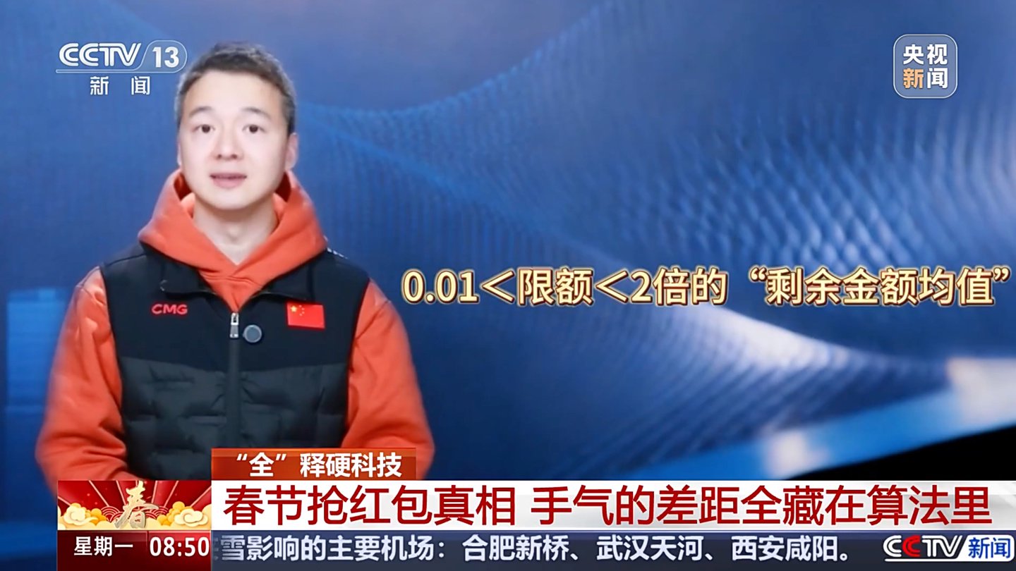 未经允许不得转载:紫竹林-程序员中文网 » 央视揭秘春节抢红包背后算法:把所有人的“平均运气”拉平