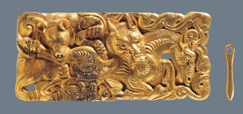 〔西汉〕金带扣上的“刑白马盟”,徐州博物馆藏。