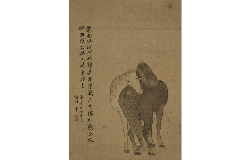 罗聘《双马图》,上面题跋的那首诗的最后一句便是“不与人骑更好看”。