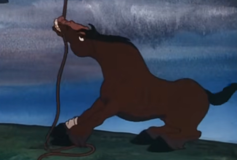 小说中拳击手的结局似乎违背了奥威尔最初的想法——哪怕牛马意识到了自己的力量,只要加以思想和意识上的引导,依然可以让牛马心甘情愿地被控制,被役使,当鞭笞打在身上时,它们甚至只会认为是自己做得不够好,让主人生气失望。这正是驯服的本质所在,让马成为一只生来就具备舍己从人无私道德的动物,“它无保留地贡献出自己,所以它不拒绝任何使命,所以它尽一切力量来为人服务,它还要超越自己的力量,甚至于舍弃生命以求服从得更好”。或者就像电影里那句简明扼要却意味深长的台词所说的: