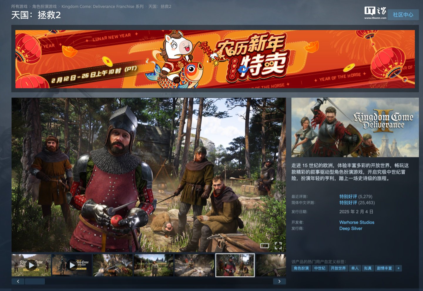 公开信息显示,《天国:拯救 2》于去年 2 月发售,在 Steam 国区定价为 228 元,好评率 94%“特别好评”,目前全球累计销量超过 500 万份,IT之家附游戏 Steam 地址。