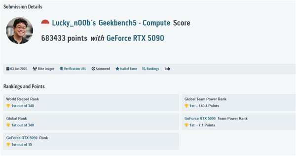 此后他成功达到3.6GHz,并在3.5GHz频率下创下Geekbench 5计算得分683433分的世界纪录。