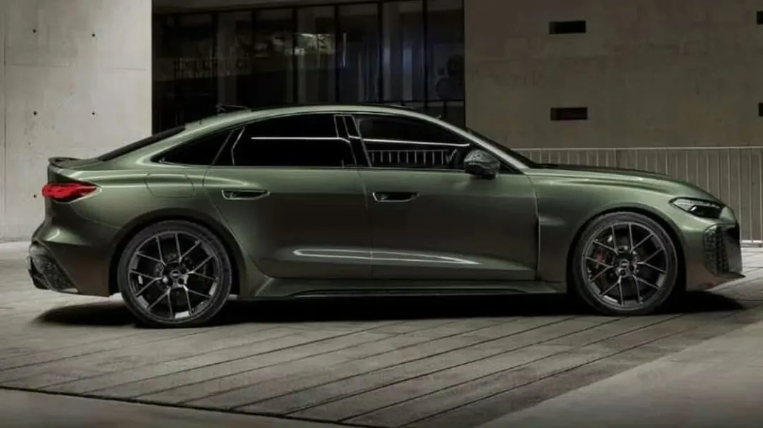 新车基于奥迪 A5 平台打造,RS 专属宽体套件使其整体气场更接近 RS6,甚至更具攻击性。车身相比普通 A5 更长、更宽、更低,轴距保持 2900mm 不变。
