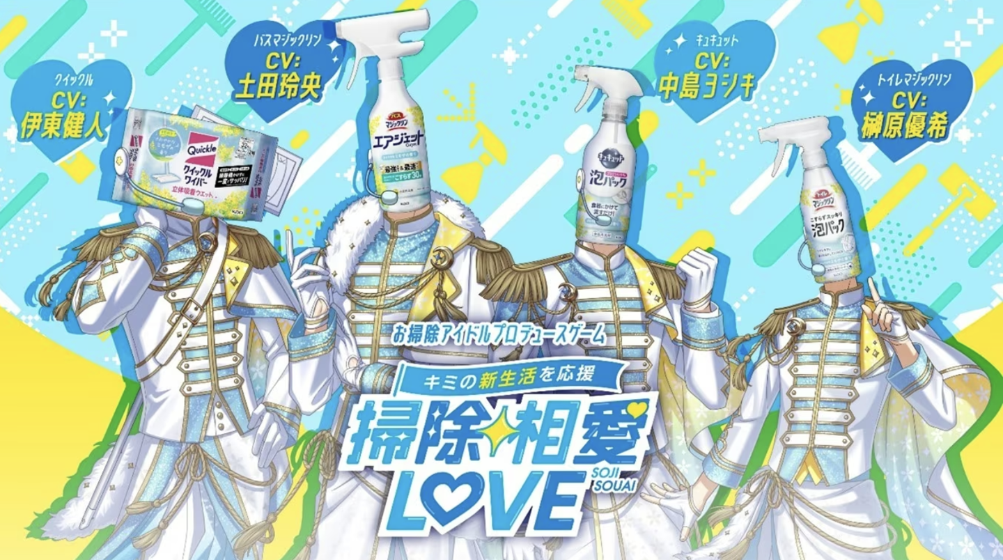 家居清洁用品制造商花王跨界推出游戏《扫除相爱 LOVE》,将清洁剂拟人化为偶像团体