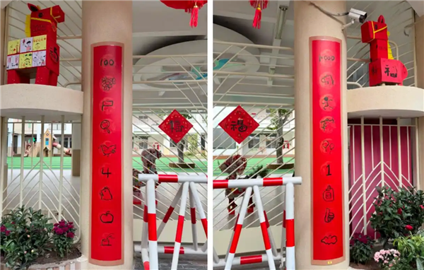 据悉,一位博主在社交平台发帖称,一副挂在幼儿园大门两侧的春联吸引不少游客驻足拍照,有人看了半天没读懂,有人直呼“太有创意”,