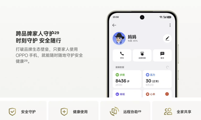 在系统方面,OPPO A6 Pro搭载最新ColorOS,支持大字体、简易模式、远程守护等功能,操作直观易懂;小布助手可语音查天气、设闹钟,长辈动口就能用。支持NFC公交卡、一键健康码等功能,长辈出行、就医更省心。
