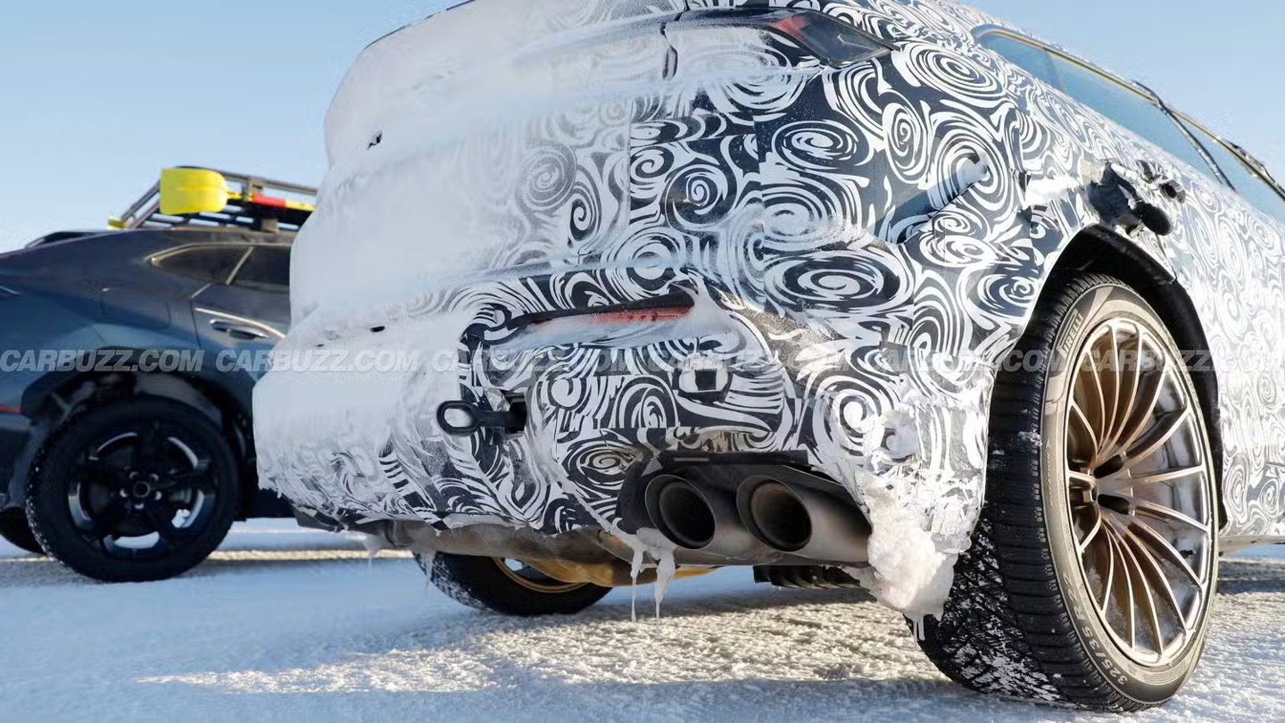 外观方面,前后轮拱处新增了碳纤维挡泥板,车尾不仅保留了鸭尾设计,还在车顶加装了尺寸更大的固定式尾翼。后轮后方的通风口经过了重新塑形,整体给人的感觉是更具攻击性。
