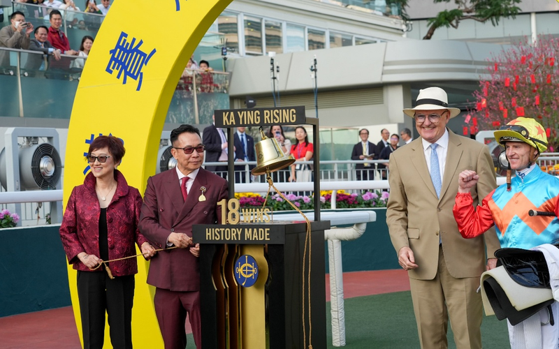 骑师潘顿向大批支持者挥手致意。香港赛马会行政总裁应家柏表示:“‘嘉应高升’今天表现从容不迫,堪称世界最佳马匹。它性格讨人喜爱,表现出色,实力属于另一个层次。今年马年以强劲势头开局,从两周前在沙特阿拉伯举行的‘亚洲赛马会议’,到年初一至初三的一系列新春活动,包括马年赛马日,至今天‘嘉应高升’创出香港连胜纪录,实属圆满。”