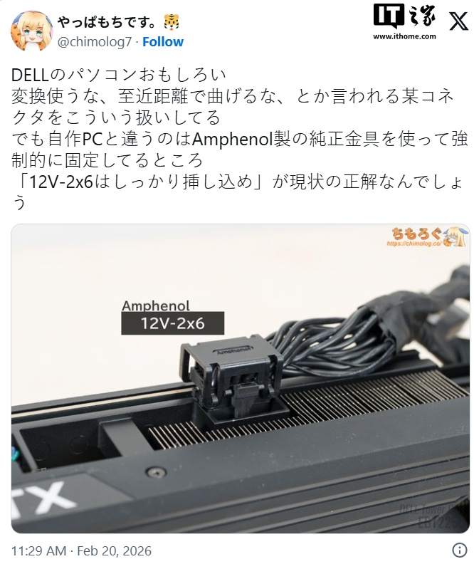 IT之家 2 月 23 日消息,显卡 12V-2×6 电源接口熔毁事故频发,似乎就连像戴尔这样的大型 OEM 也无法完全保证安全,该公司正在采取额外的措施来“打补丁”。