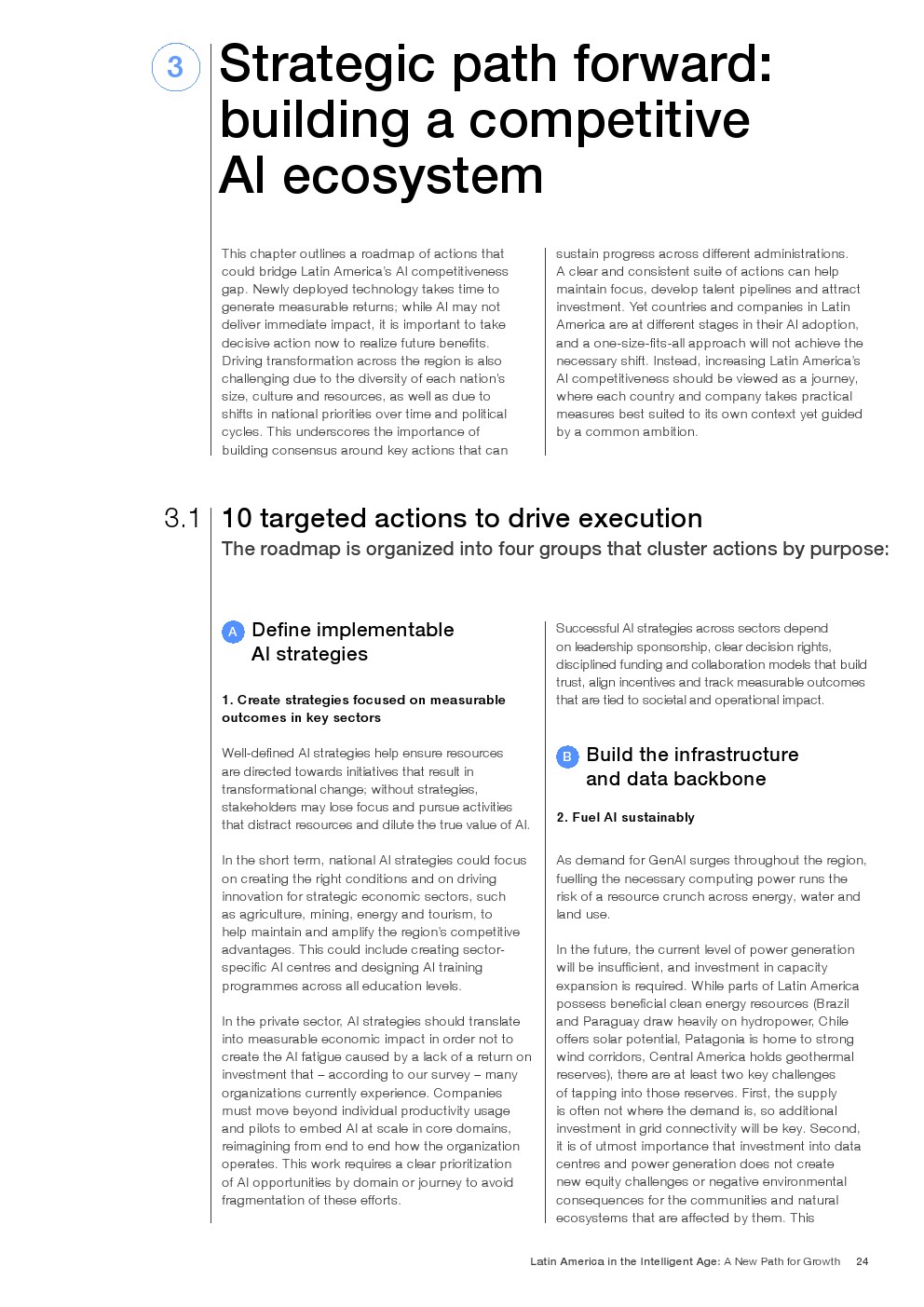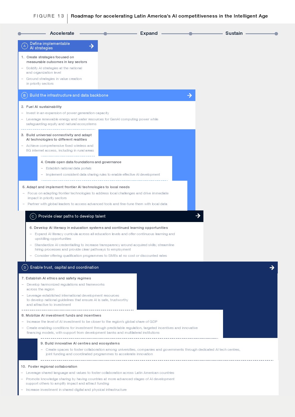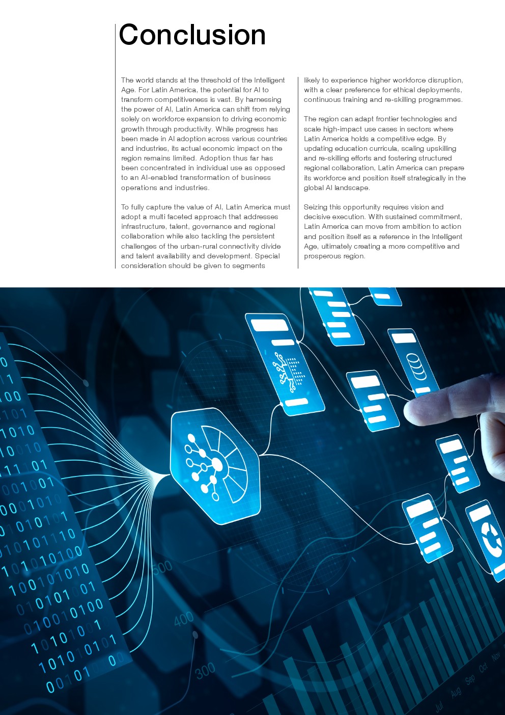 本报告通过宏观经济数据、公司层面的分析以及与一个高级别多利益相关者群体的定性磋商,评估了拉丁美洲的人工智能准备度和采用水平。该框架建立在世界经济论坛“智能经济蓝图”中提出的层次之上。