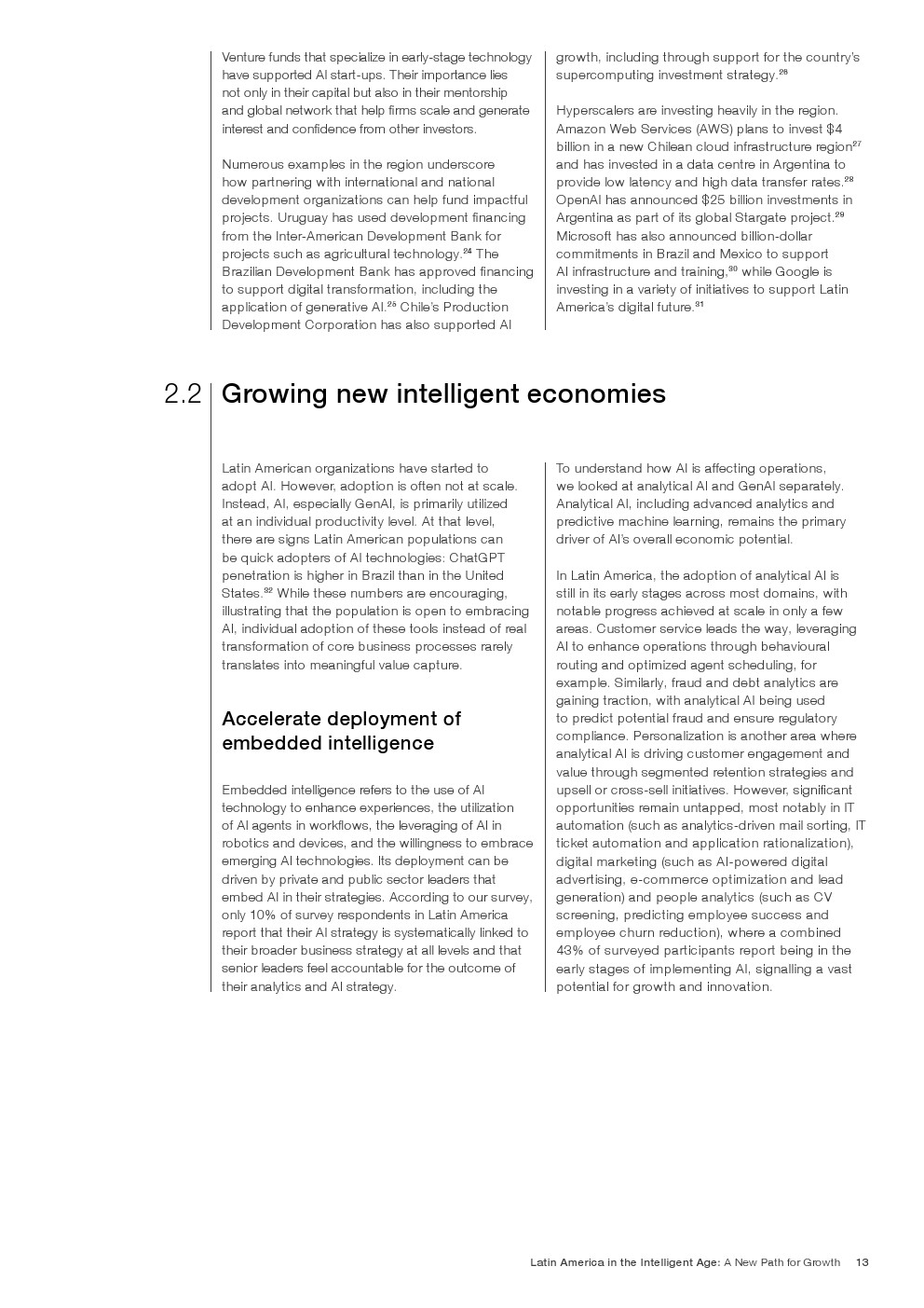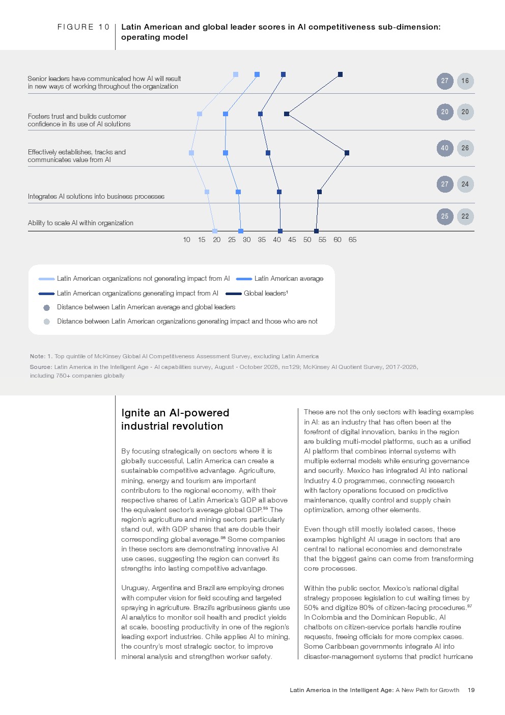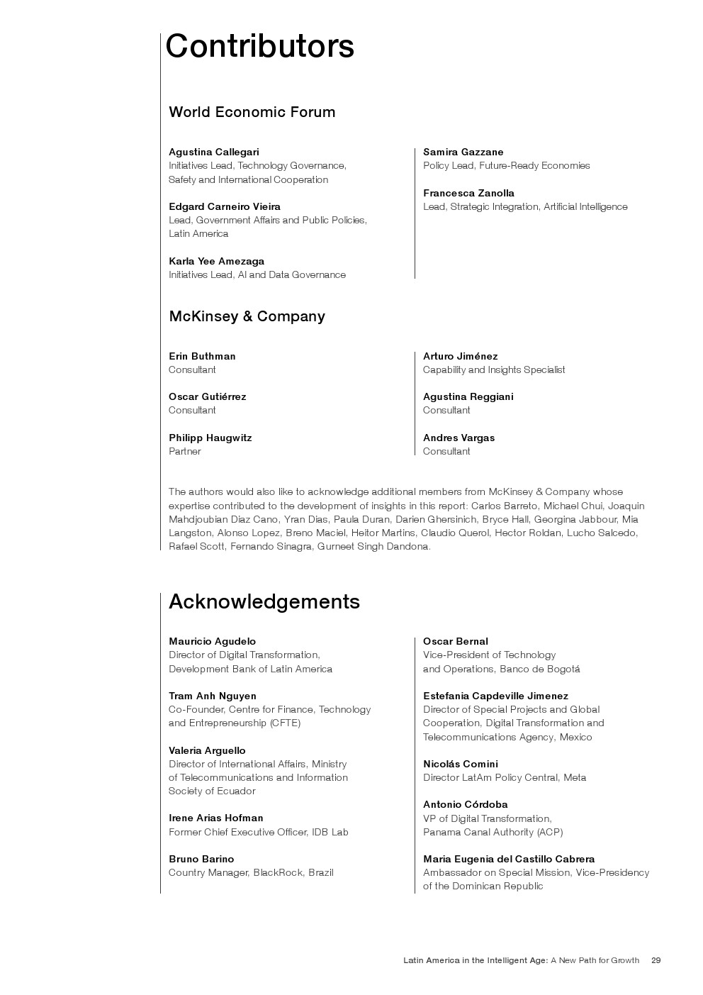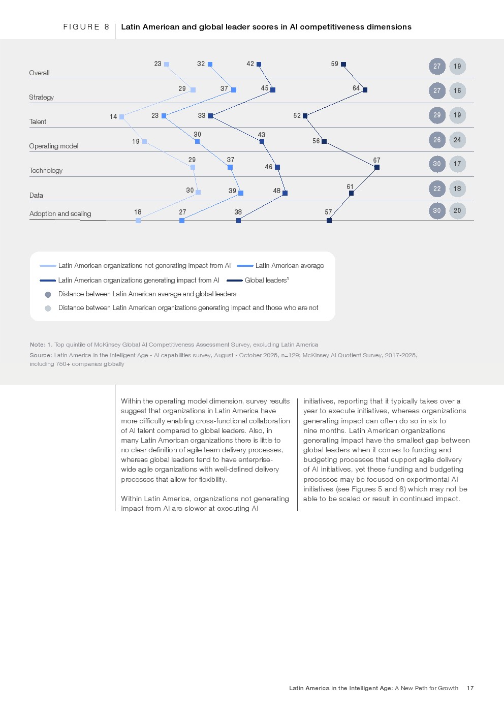 本报告通过宏观经济数据、公司层面的分析以及与一个高级别多利益相关者群体的定性磋商,评估了拉丁美洲的人工智能准备度和采用水平。该框架建立在世界经济论坛“智能经济蓝图”中提出的层次之上。
