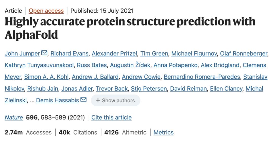 AlphaFold 2 在 2021 年开源,配套论文发表在 Nature 上,预测结果免费向全球开放。