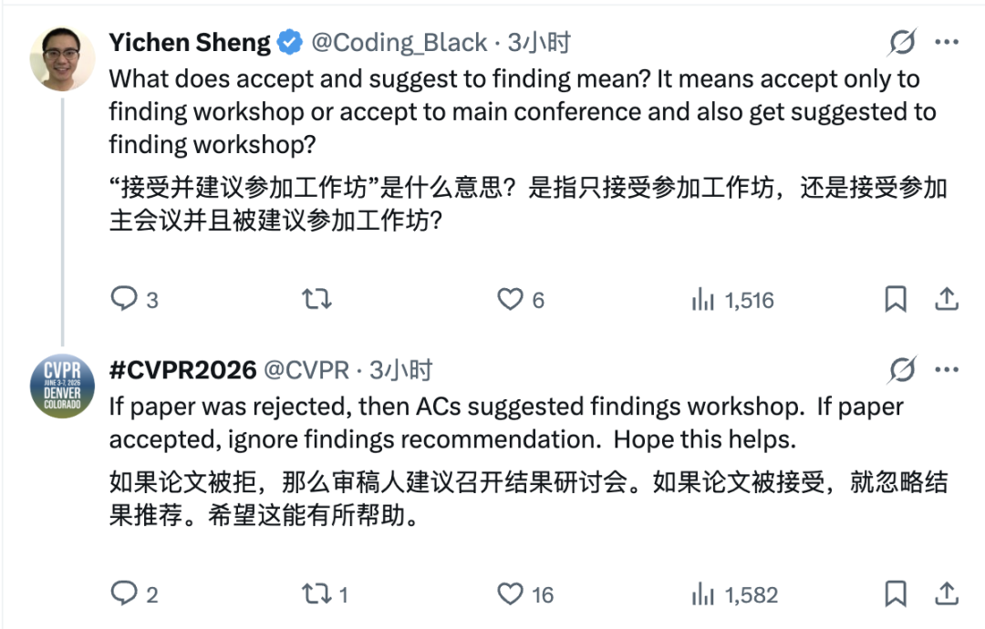 X 上,CVPR 官方账号发布消息后,有人追问录用细则,有人晒出截图庆祝,也有人沉默地关掉了页面。