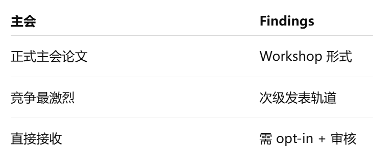 也就是说,Findings 是有含金量的安慰奖,但不是主会。