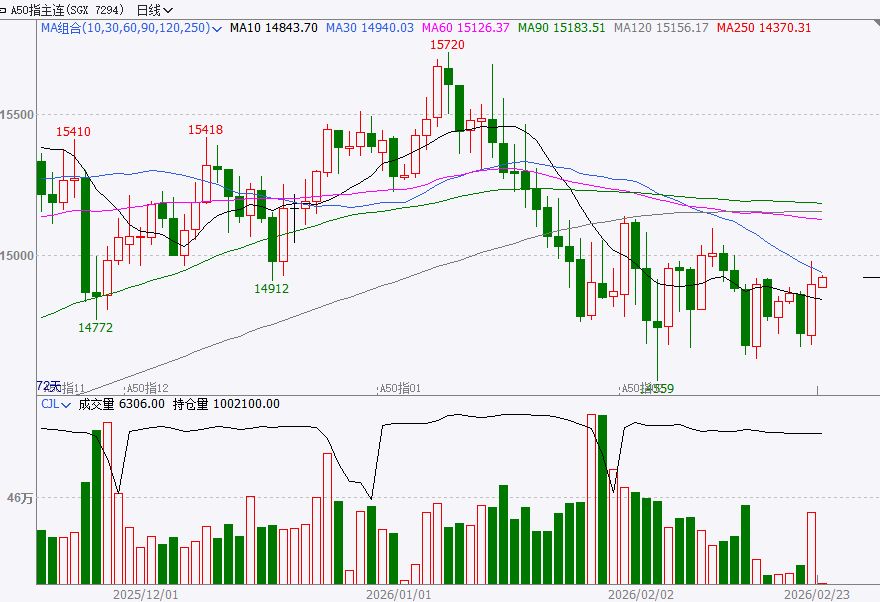 马年以来,港股已经交易了两天,光纤、人形机器人 、黄金、锂电池等表现出色。从春节期间A50期指的走势来看,2月23日上涨1.17%,阳线完全超越了上个交易日的阴线。