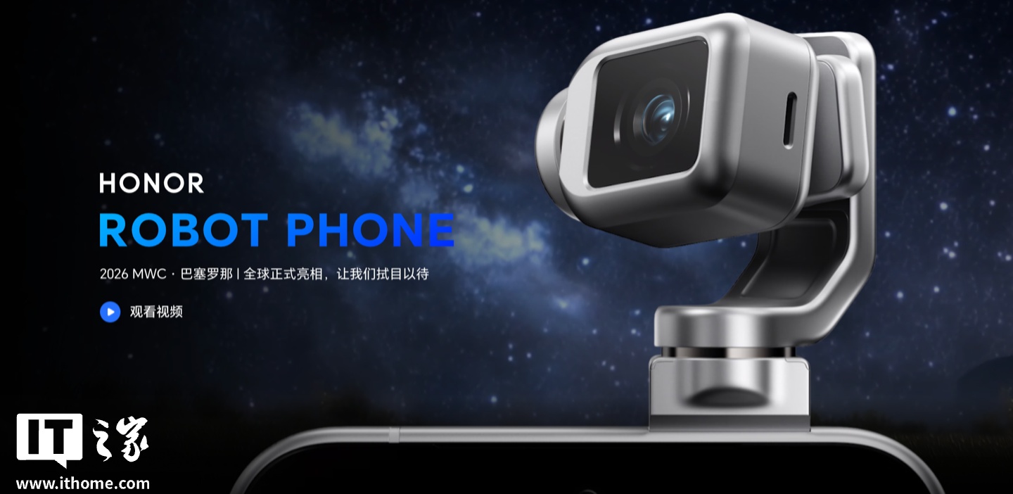 IT之家注意到,此前荣耀官方 ROBOT PHONE 预热视频中已展现了一款人形机器人,预计这就是荣耀届时将公布的产品。关于荣耀 MWC 2026 全球发布会的更多消息,感兴趣的朋友可以关注IT之家后续报道。
