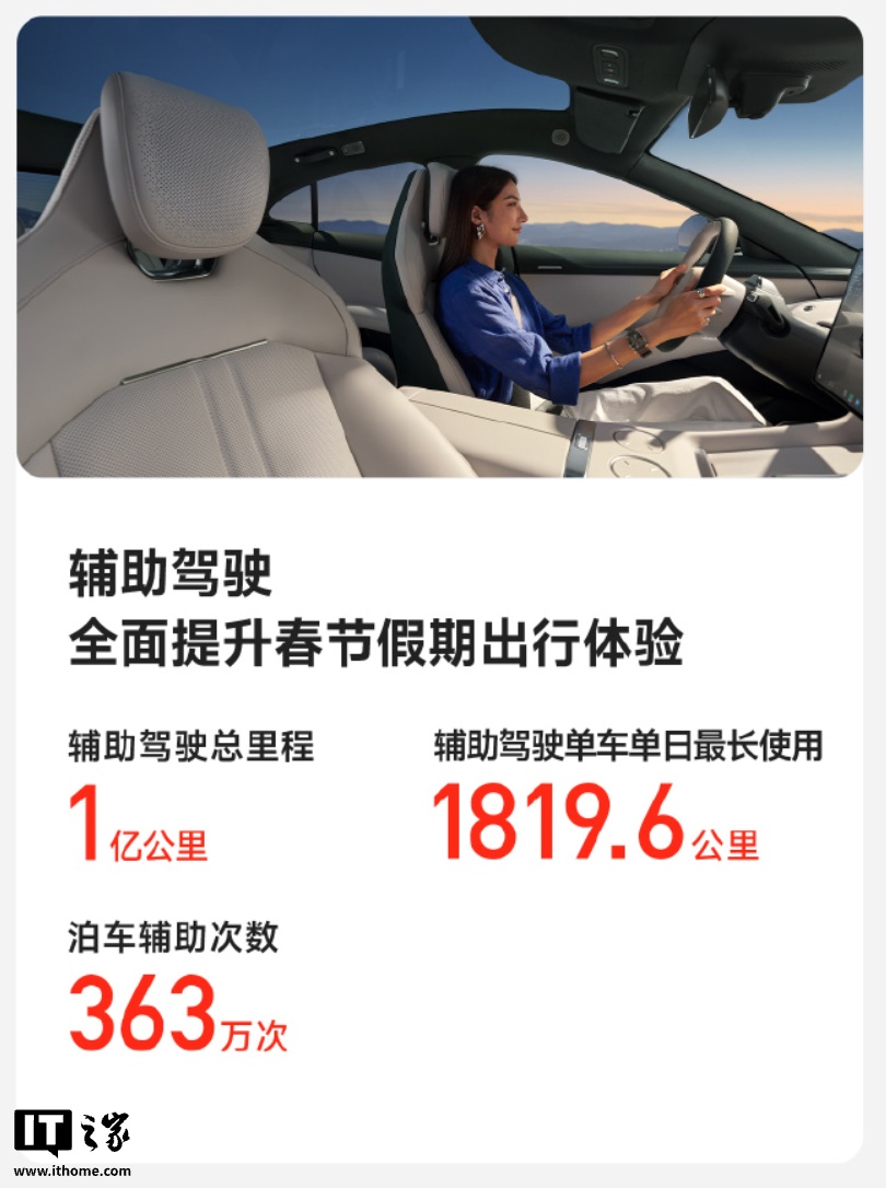 未经允许不得转载:紫竹林-程序员中文网 » 2026 年春节假期小米汽车出行报告公布:累计行驶里程超 4.05 亿公里、辅助驾驶总里程 1 亿公里