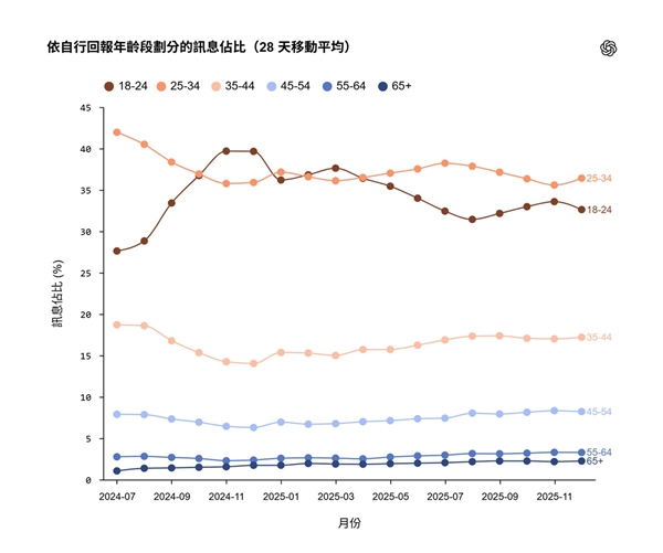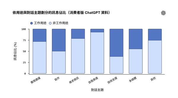 数据显示,18至34岁年轻用户在个人表达方面参与度最高,更倾向于将ChatGPT视为可以自由思考的空间,而不仅仅是工作工具。